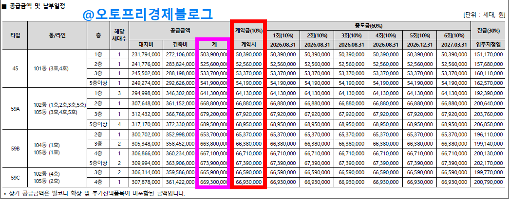 이번 5차 무순위로 나온 잔여 세대의 분양가를 꼼꼼히 살펴보겠습니다. (최고가 기준)