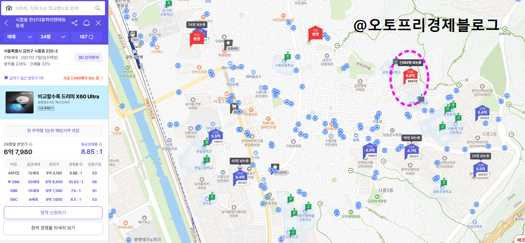 현재 서울 하늘 아래, 그것도 2027년에 입주하는 신축 24평형을 6억 원 후반대에 잡을 수 있다는 건 숫자만 놓고 보면 정말 말도 안 되는 역대급 가성비가 맞습니다. 요즘 경기도 외곽 신도시 분양가도 6~7억을 우습게 넘어가는 추세니까요.
