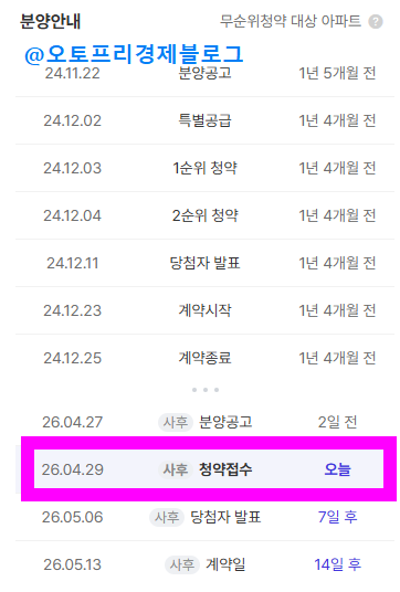 - 청약 접수일 : 바로 오늘! 2026년 4월 29일(수) 09:00 ~ 17:30